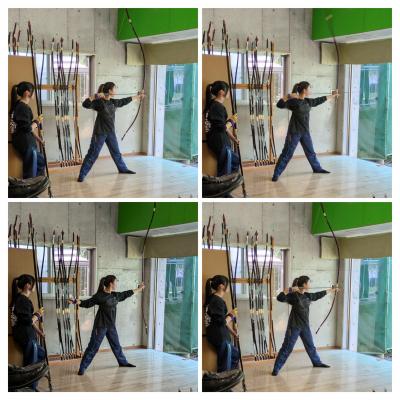 今日は練習の合間の一コマ、連日の練習のため、弓の弦(つる)が切れそうです。