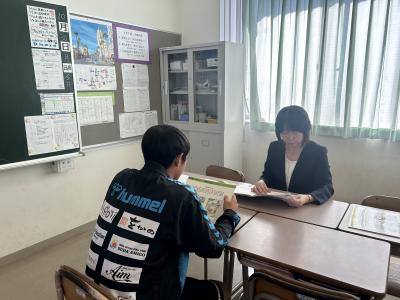 いよいよ1年生も、来年は文系・理系の選択授業が始まります。文理の選択は、将来を考えることにつながります。模擬試験の結果を受けて、三者面談も実施し来年の選択に備えます。