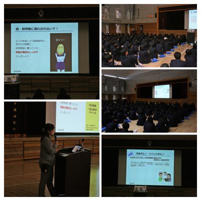 第1学年 オリエンテーション第3日目 学校行事 投稿日時 : 04/10 本日は、オリエンテーション3日目、最終日です。 身分証明書の写真撮影と、入学記念の集合写真を撮影しました。 少し緊張した面持ちの中にも、ようやく学校になれたようで、笑顔が見られました。 そのあと、サイバーセキュリティ講演を聞きました。ネットは便利ですが、 その一方で様々な危険が存在することを学ぶことができました。