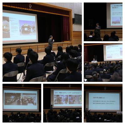 キャリアガイダンス(1年生) 授業 投稿日時 : 02/17 本日は、第5校時・第6校時をつかい、1年生対象にキャリアガイダンスを行いました。 大学の先生をお迎えし、大学で学ぶということはどういうことなのか、興味深くお話していただきました。 2年後の進路選択に向けて、一つ一つを丁寧に取り組んでいきましょう。
