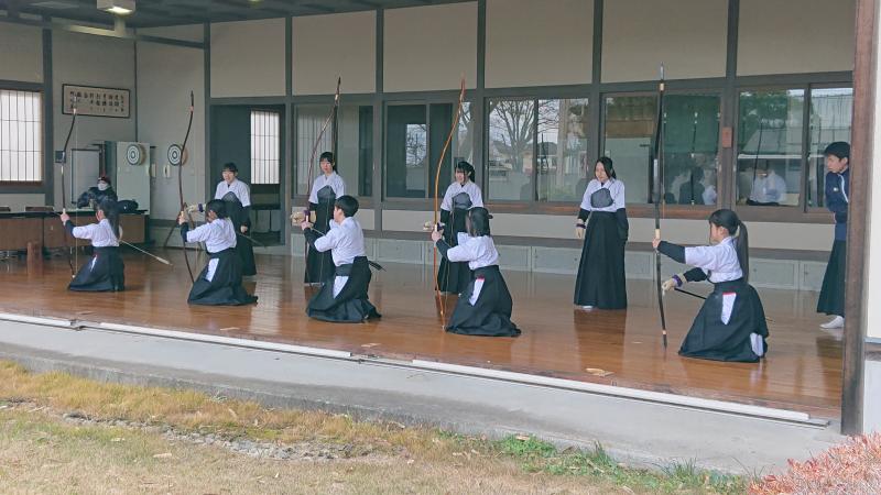 弓道部 活動報告 投稿日時 : 2024/12/23 外部練習会 12月22日(日) 寄居町立総合体育館アタゴ記念館弓道場 本来一日練習を予定していましたが,体調不良者が多く,参加した生徒の健康面を考慮し,午前のみの練習に切り替えて行いました。普段学校で行っている練習メニューだけでなく,広い道場を使って体配の練習も行うことがことができました。添付されている写真はその時の模様です。