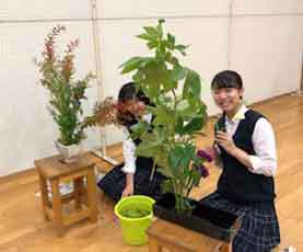 桐蔭祭用の盛り花が活け上がりました(華道部)