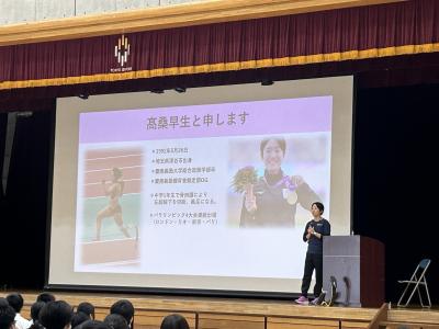 本日は、特進コースの卒業生であるパラアスリートの高桑早生をお招きし、講演会を実施しました。