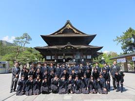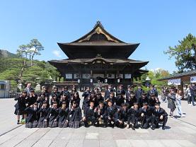 昼食後,善光寺で集合写真を撮り,仲見世通りを散策しました。