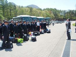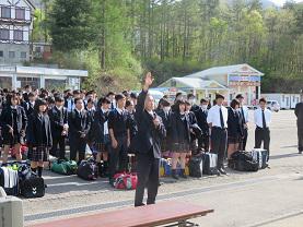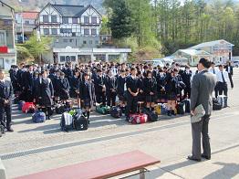 今日から2泊3日の予定で1年生1班(BCDEF組)の木島平校外学習が始まりました。