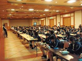 部屋へ入り、研修(校歌練習,恩師への手紙書き)を行いました。