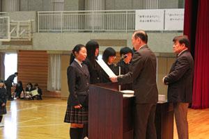 校長の式辞,部活動表彰,新任式,担任発表と続きました。