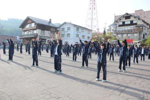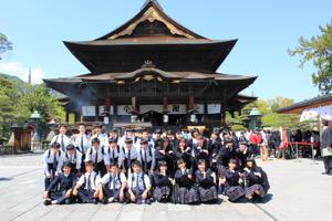 善光寺でクラス集合写真を撮り,仲見世通りを散策し,木島平へ向かいました。