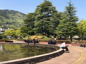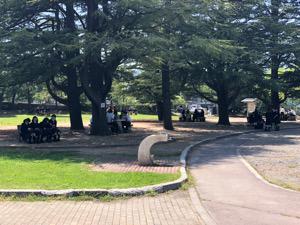 長野県に入り,善光寺近くの城山公園でお弁当タイム。