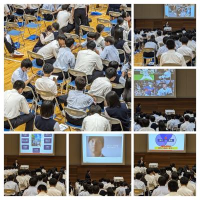 1年生を対象に、キャリアガイダンスが実施されました。講師の先生の情熱あふれる講義と、情緒豊かなアニメやCMを交えての構成に、生徒たちは引き込まれていました。