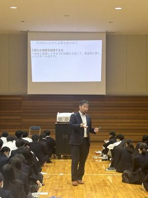 今日は、城西大学経営学部教授の柴沼先生をお招きし、総合探究が始まりました。大学や深谷市と連携しながら、本校独自の総合探究を作り上げていこうと考えています。
