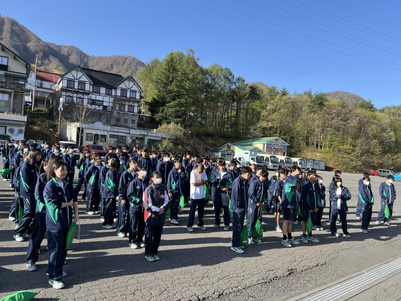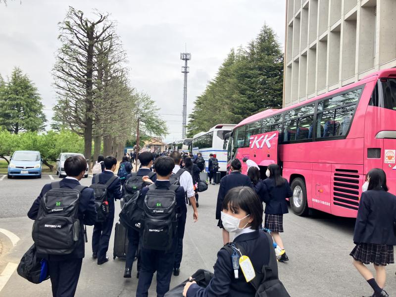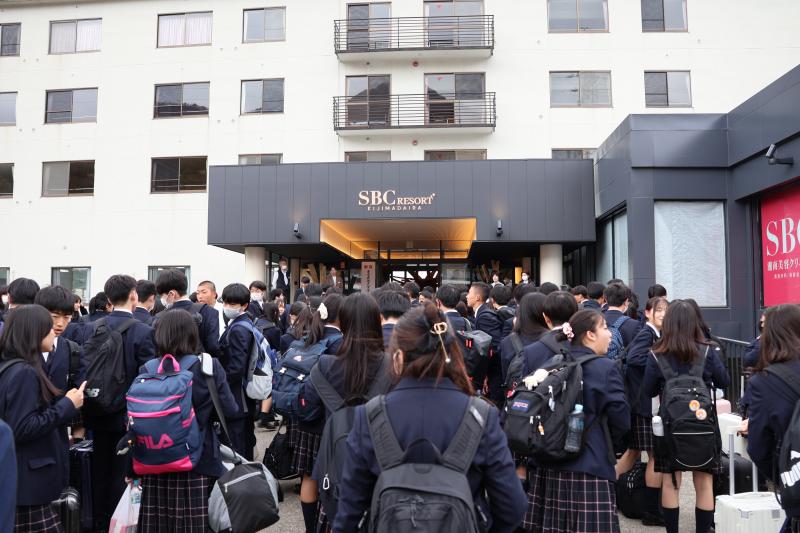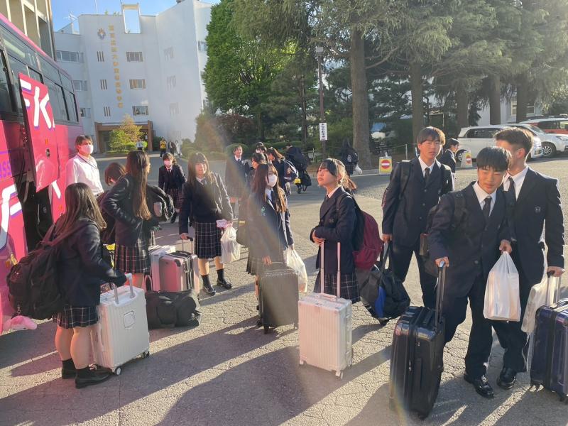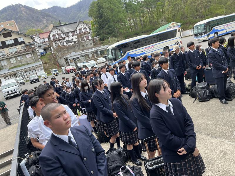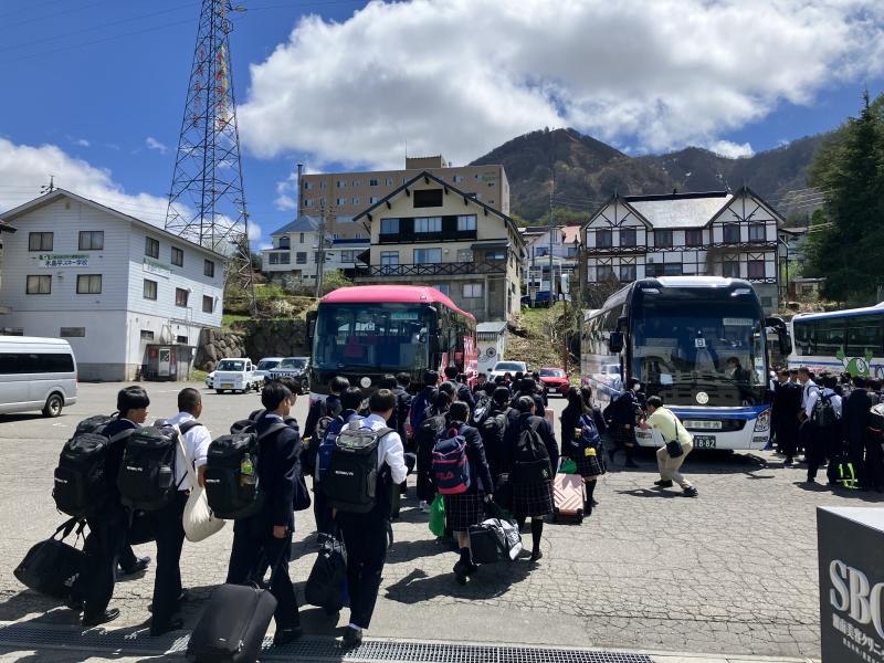 木島平校外学習が始まりました。1班は進学コース4クラスです。
