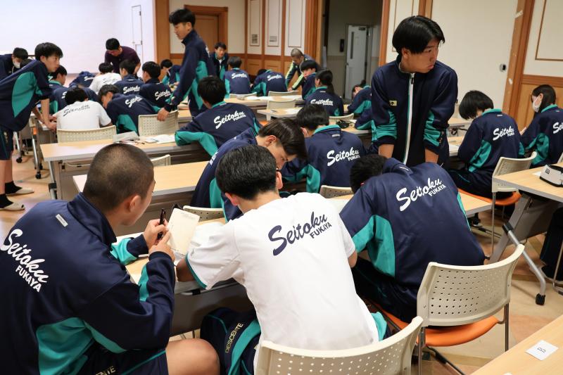 本日は、3年生の模擬試験が行われました。志望校への合格判定や、夏休み明けにある、学校推薦型選抜などの選考の資料になるものなので、生徒たちも真剣です。