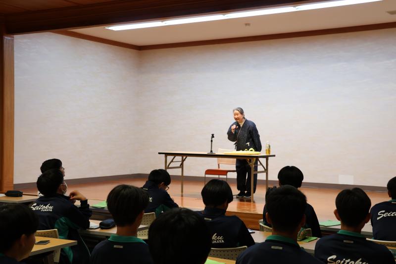 研修②語り部の方からのお話し、恩師へのハガキ書き