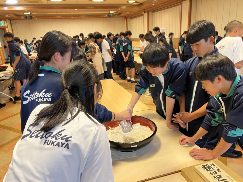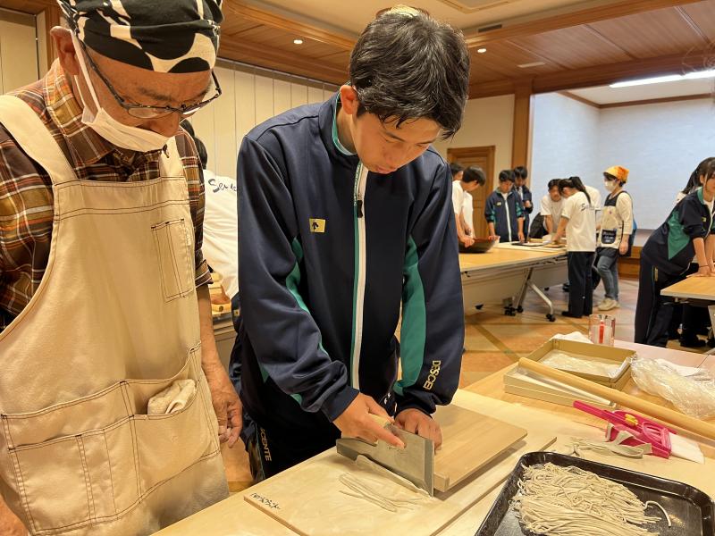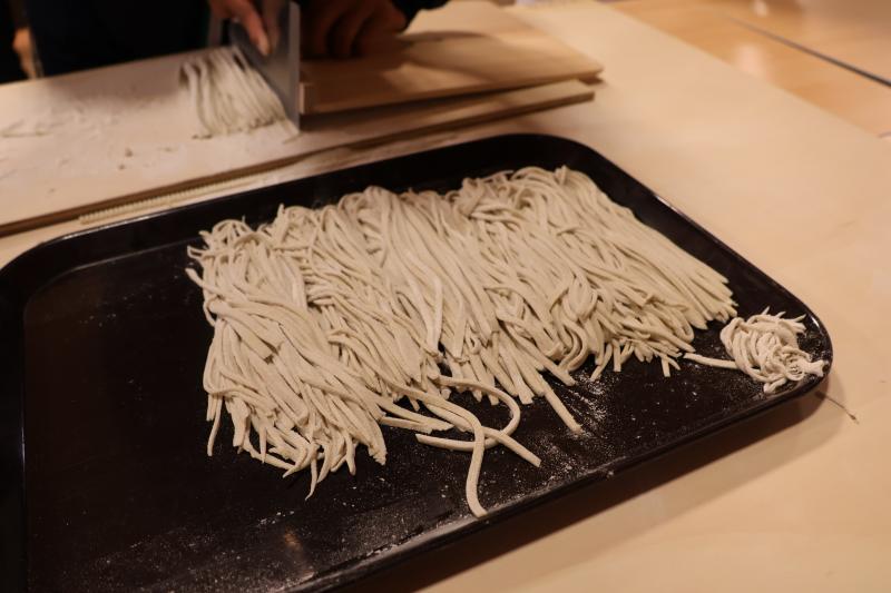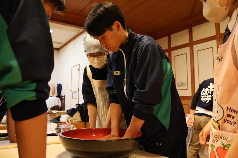 班ごとに分かれて、先生に教えていただきながら蕎麦を打っていきます。