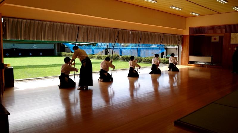 11月に昇段審査があるということで、深谷市弓道連盟の方をお招きして、体配(弓を引くための所作)を指導していただきました。
