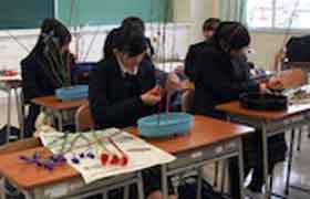今日は新入生の部活動見学の日。そして私たち華道部の新年度最初の活動日でもあります。活けるのは久しぶりです。感覚を確かめつつ、楽しみながら活けました。