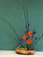 そうそう、申し遅れましたが、今日の花材はサンゴジュ・ガーベラ・チースです。完成した作品がこちらです。
