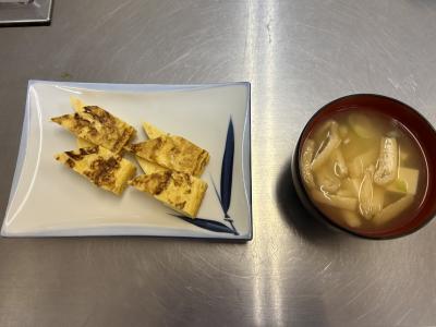 お味噌汁では日本食の基本となるだしをこんぶとかつお節よりとりました。