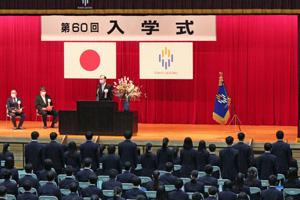 新入生は,真新しい制服に身を包み,緊張した面もちで入学式に臨みました。