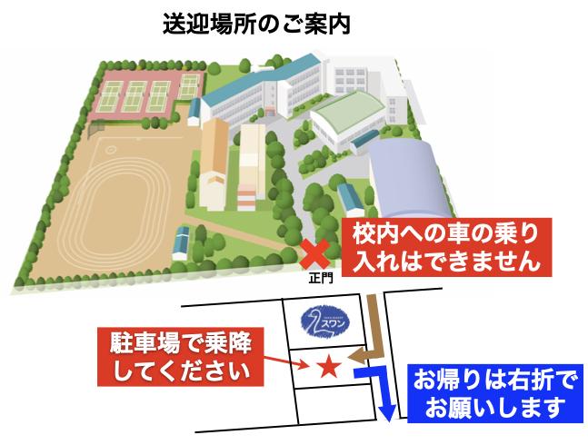 校内への車の乗り入れはご遠慮ください。誘導の指示に従ってください。