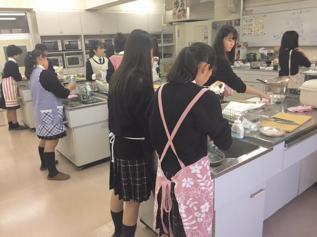 皮、あんを作る人に分かれ手際よく調理していましたが、包むのに悪戦苦闘する生徒がたくさんいました。