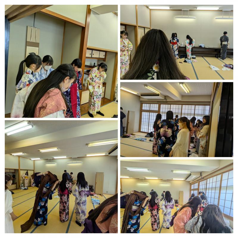 本日は、文化祭に向けて、浴衣の着付けの練習です。