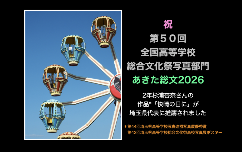 来年夏に開催される第50回全国高等学校総合文化祭(あきた総文2026)写真部門へ