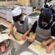 皮、あんを作る人に分かれ手際よく調理していましたが、包むのに悪戦苦闘する生徒がたくさんいました。